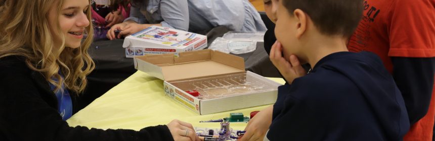 This year there were five STEAM events, to include all five elementary schools. It was put together by Mrs. Delawder and five interns: senior Lily Hare, and juniors Eliza Fink, Isaiah Morales, Laela Thibault, and Mackenzie Wagaman. Several high school student volunteers also ran stations to make the day possible.