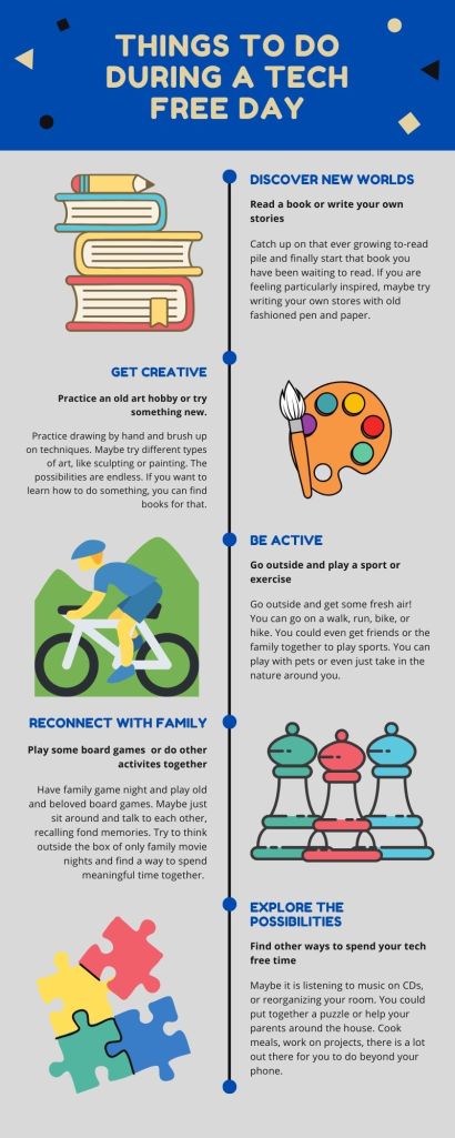 Overall, I noticed that a day without technology was refreshing, and definitely something that more people should try. It made the easy distractions disappear, and let me take time out of my day to relax and not worry about the pressure that can be caused from being on technology too much.
