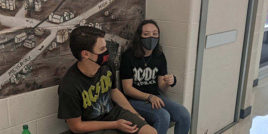 Seniors Jason Mendicino and Jocelyn Herres wear masks and joke with each other while eating lunch. The couple does not socially distance as they frequently watch anime together and work at a pet store. They had more time to communicate during the quarantine and grew closer together because of the pandemic according to Mendicino.