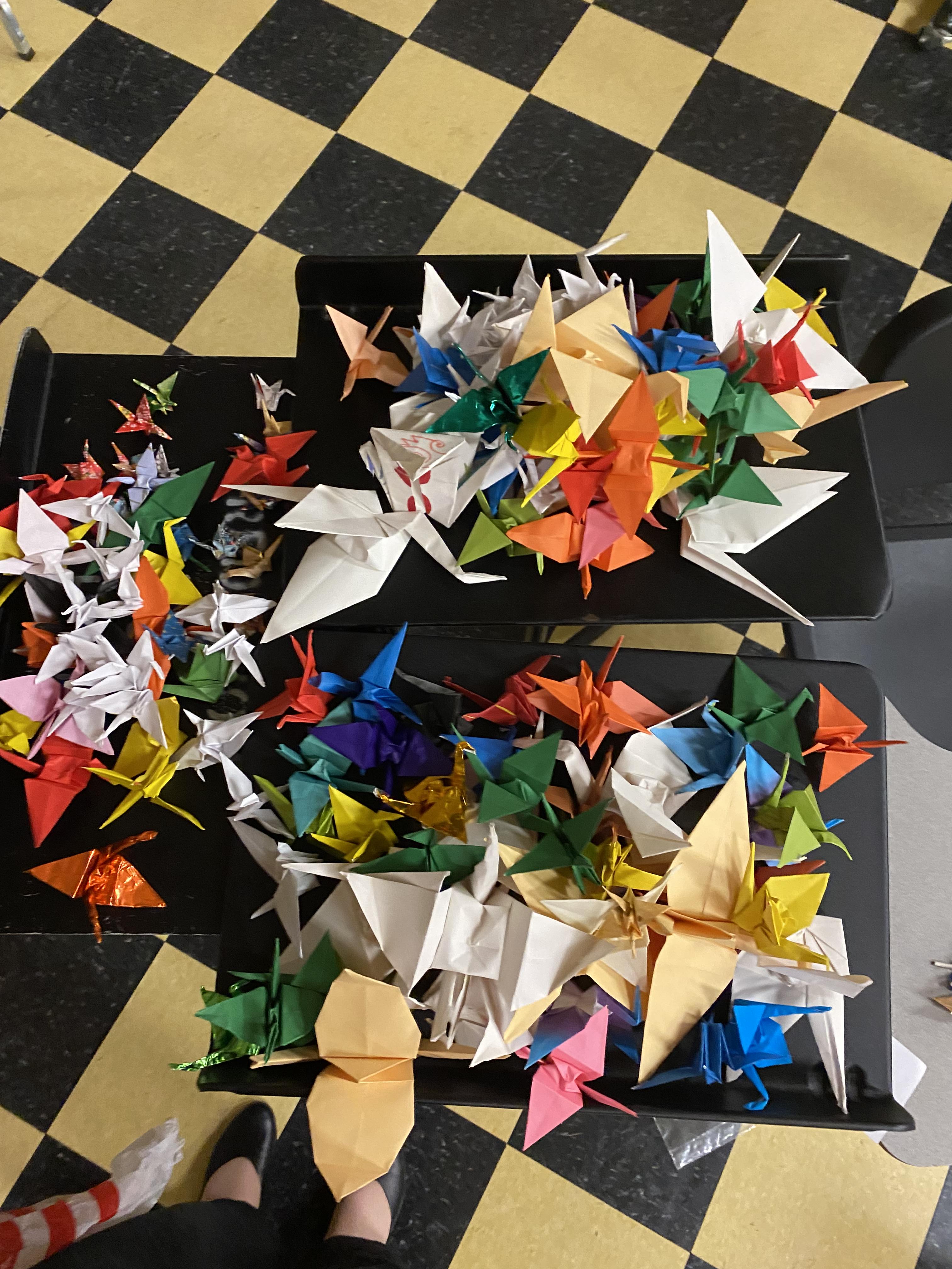 The total number of cranes made here at Red Lion is 1,250 and Littlestown has a total of 1,050, creating a grand total of 2,130 cranes in honor of Carson.