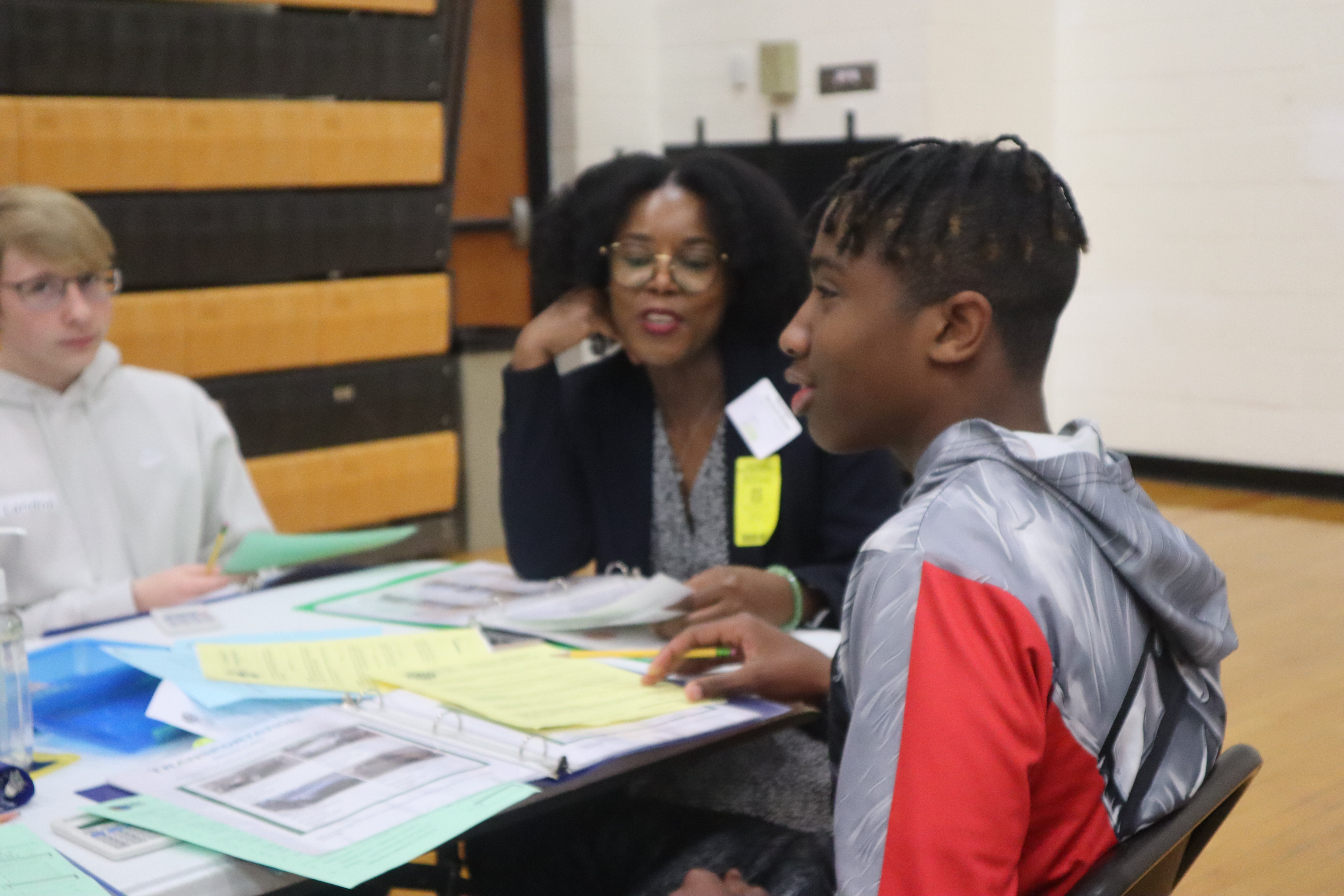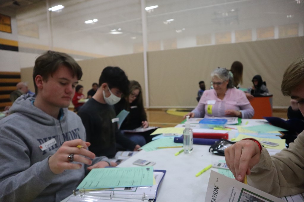 Each junior spent two hours in a group of eight or less students led by a community member guiding their budgeting process.